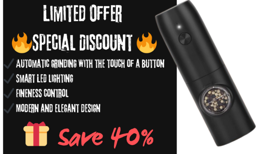 Rechargeable Electric Salt & Pepper Grinder Set with Charging Base – Automatic One-Hand Operation, LED Light & Adjustable Coarseness