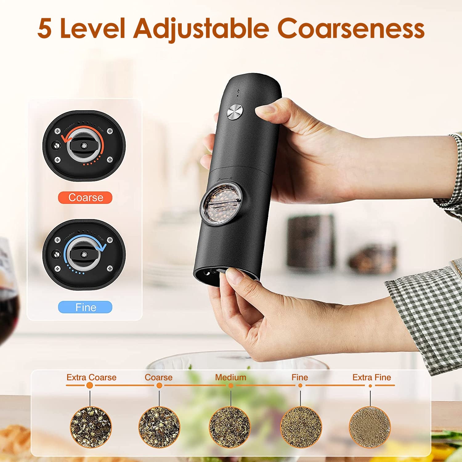 Rechargeable Electric Salt & Pepper Grinder Set with Charging Base – Automatic One-Hand Operation, LED Light & Adjustable Coarseness